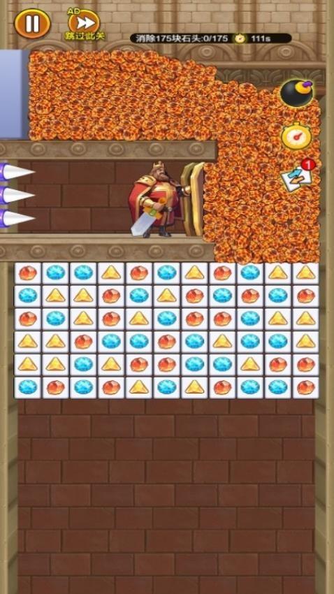游戏中显示一个国王,您需要消除同元素的道具就可以帮助国王脱困