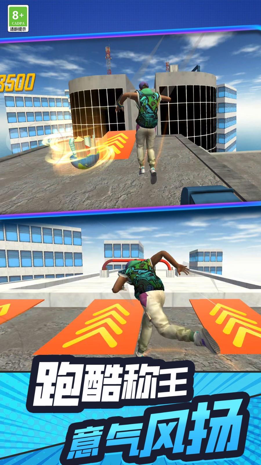 跑酷过程中你可见到不同的阶段,只要通过了这些环节之后就可以获得相应的分数。