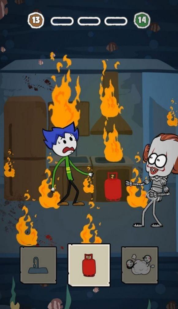 2、帮助火柴人逃离这个危险的地方,玩家需要灵活思考,游戏设计非常有趣,漫画风格的画面场景让玩家更喜欢。
