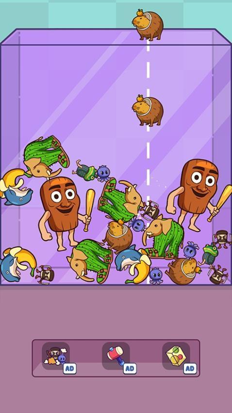 2、支持晃动箱子道具,将箱子里面的怪物快速晃动,碰撞同类怪物就自动合成