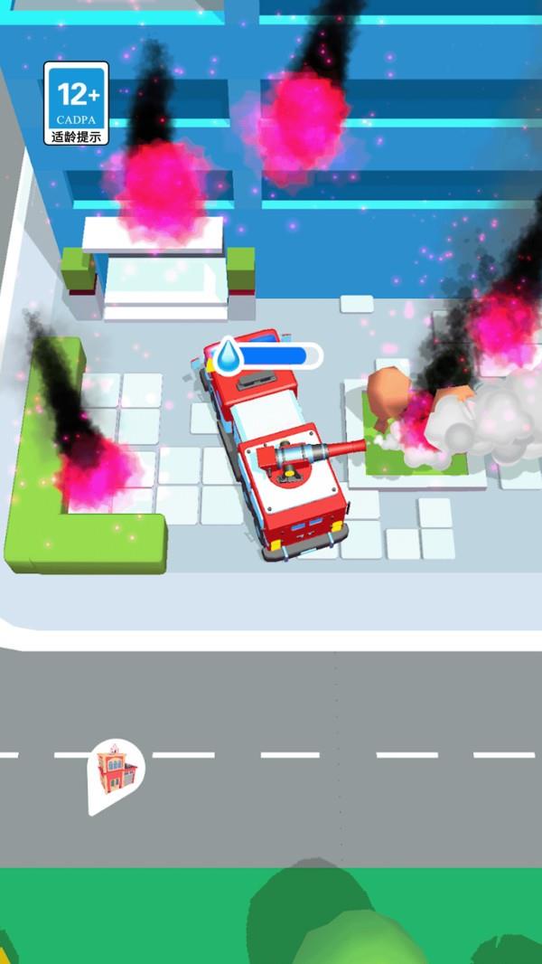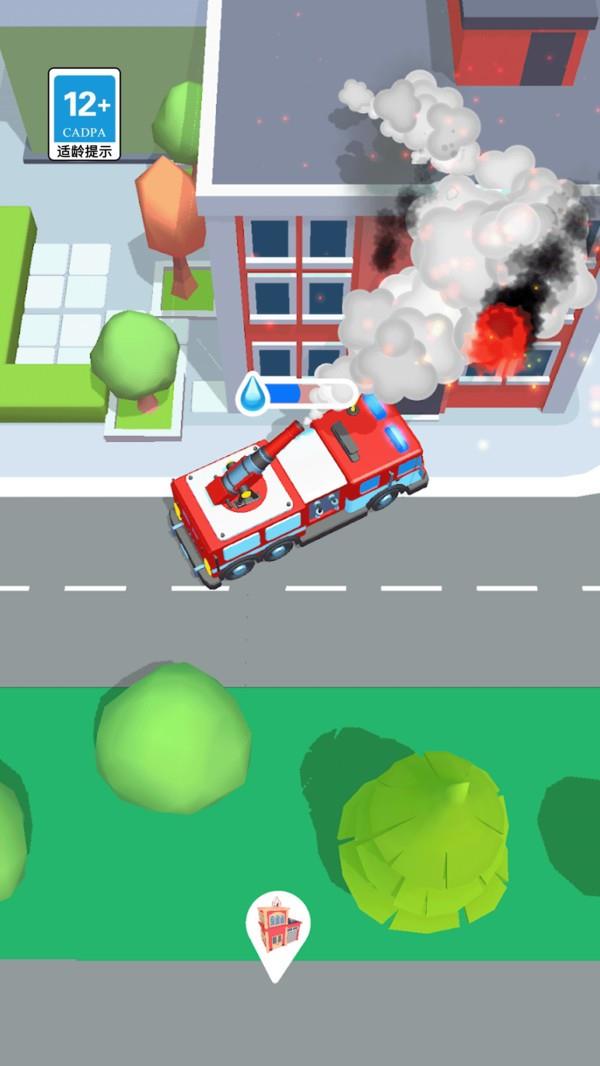 在游戏可以一个人驾驶消防车灭火,前往火灾区域就可以自动灭火