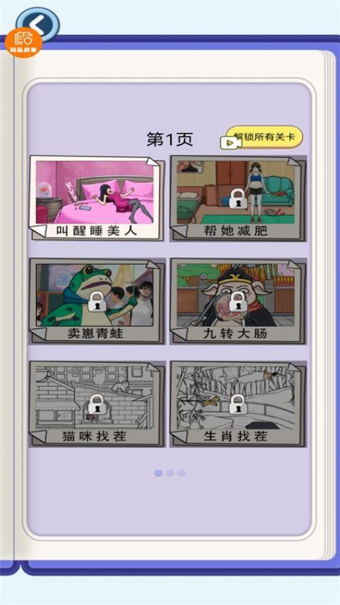 妹子别怕是一款内容相当丰富的休闲解谜闯关游戏。主题内容多种多样,玩家可在通过了相应挑战关卡之后便可解锁全新的关卡,能够得到趣味性极强的体验效果。可关注不同的解谜挑战,比如黑心足疗店、专治老赖、九转大肠等等,只要遇到这些挑战便可立即找到相关的挑战信息,还能逐步发现适合的关联解决方法。游戏还会提供多种找茬题材,比如猫咪找茬、生肖找茬,需要在关卡中发现相关的动物或是其他的物品,满足了要求之后即可通过考验,还会有大量的关卡等你来突破。如果你也对这款游戏感兴趣的话,快来试玩吧!