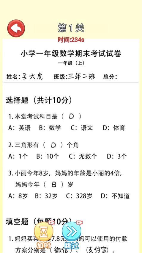 2、吸引文字爱好者和数学计算的玩家,提高文字辨别和计算能力,每张试卷都要自行思考答案进行批改,自己的思考错误会造成巨大影响。