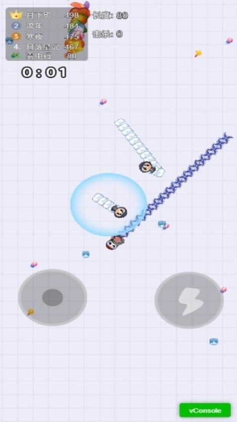4、需要躲避其他玩家的攻击,如果其他贪吃蛇比你长就需要躲避攻击