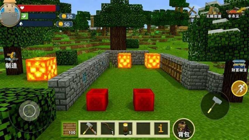这是一款经典的方块世界冒险游戏,游戏结合了方块建造、沙盒探索以及塔防元素。为了在游戏里生存和发展,玩家需要通过伐木、挖矿、捕猎等方式来获取资源,并通过合成系统打造武器和工具。