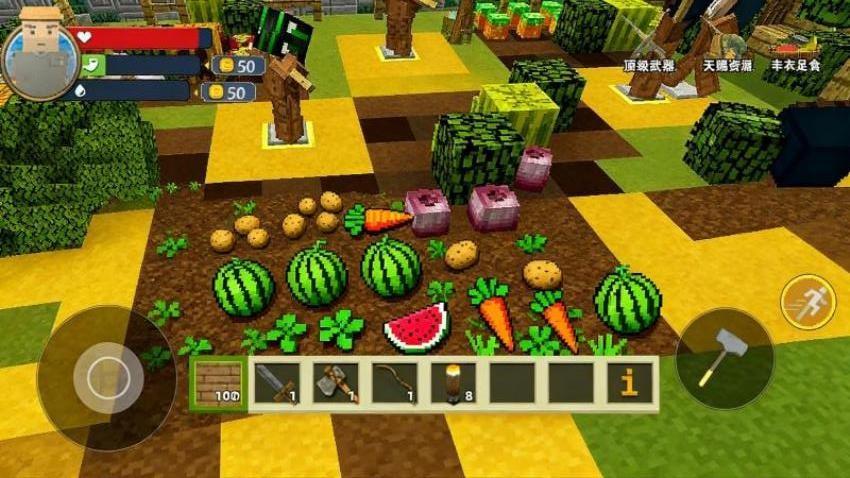 像素方块世界3D是一款自由好玩的休闲建造模拟游戏。收集各种相关的工具以及材料,即可打造自己的专属世界,没有任何的限制出现,尽情享玩各个挑战,还会有其他的关联元素等你来解锁。在农场之中你可种植各种蔬菜水果,比如西瓜、胡萝卜、土豆、白菜、茄子等等,能够得到许多的食物,利用它们来制作各种美食。建设的时候你需关注房屋的结构,发现相关的情况,还要找到特定的要素,并且你也会收获到一些其他的条件,最终可快速提供建造机会,加快整体进度。如果你也对这款游戏感兴趣的话,赶快来试玩一下吧!