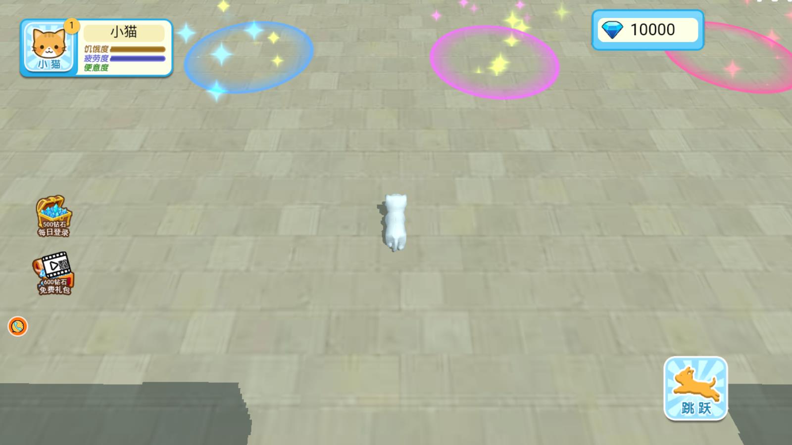 3、这里就是宠物互动界面,开始控制你的小猫移动,可以快速跳跃