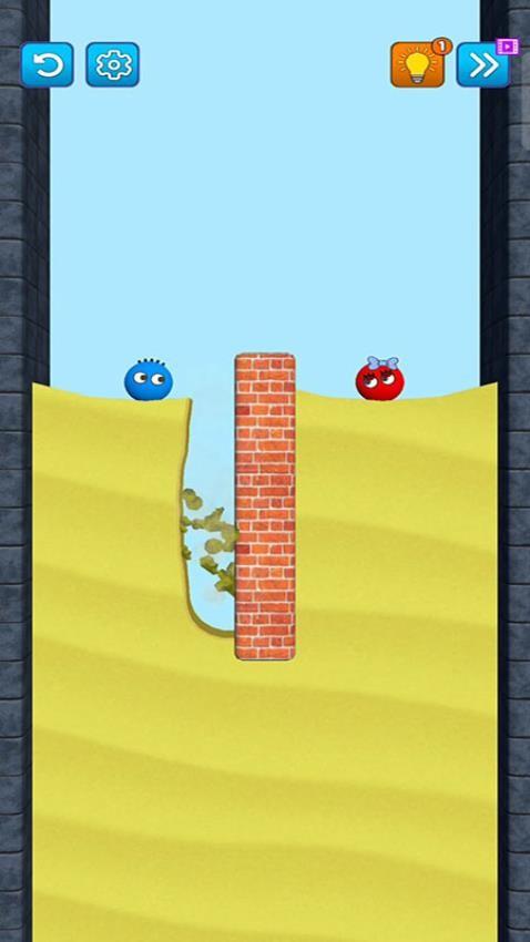 1、玩家通过滑动或点击的方式精准消除沙子,运用重力和物理原理,让不同颜色的小球在关卡中顺利相遇。