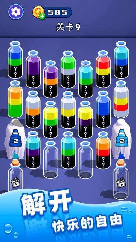 1、水杯试管的颜色分层极其明确,查看颜色分布状况进行操作就能顺利完成关卡挑战,还能掌握多种技巧方法。