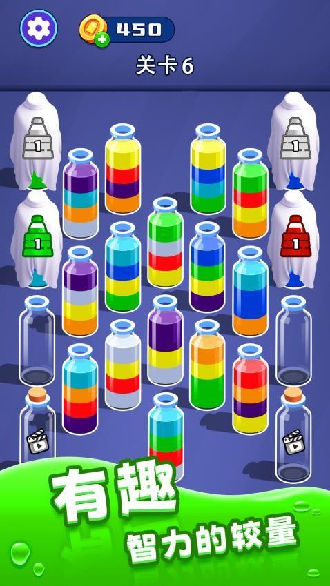 空瓶数量极其有限,完美运用空瓶才能过关。