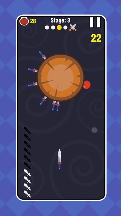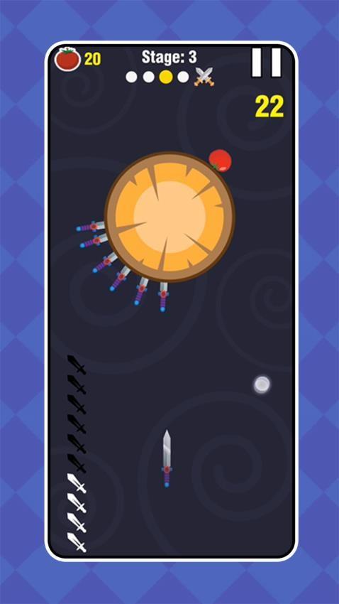 飞刀数量慢慢增加,后期想要过关需要迅速投掷。