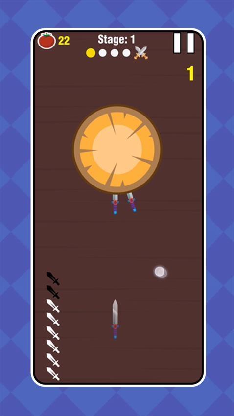 飞刀投掷手是一款考验玩家反应与精准度的休闲闯关游戏。在游戏中,玩家需要瞄准旋转的原木,投掷飞刀切开苹果并解锁新武器。每完成5个普通关卡后,将迎来更具挑战性的BOSS战,成功击败BOSS可获得专属飞刀奖励。