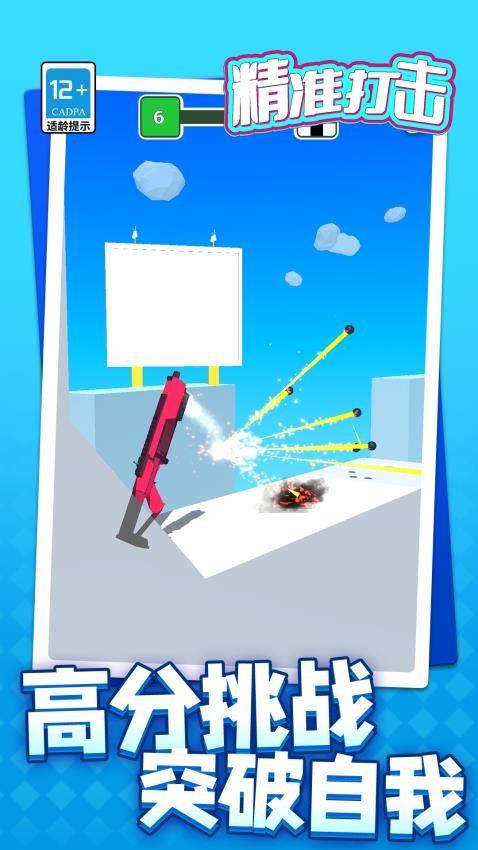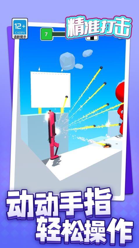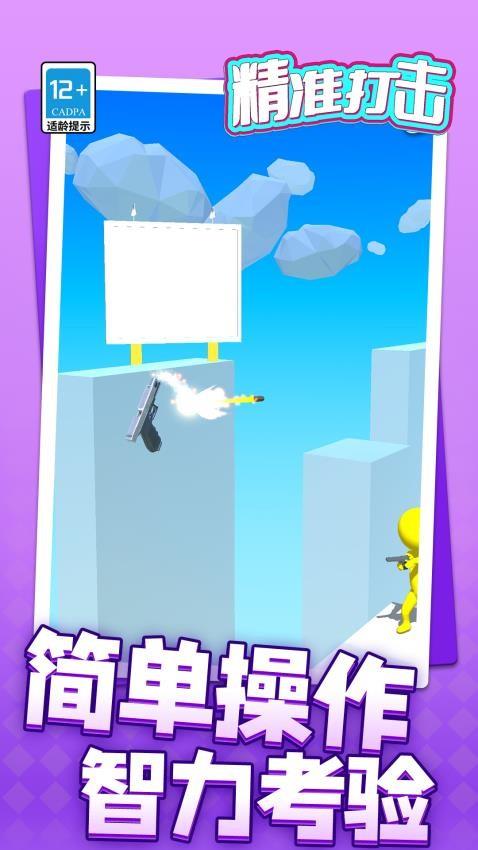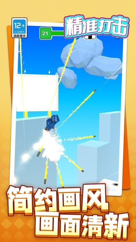 《精准打击》是一款休闲射击小游戏,游戏中,玩家需要依靠枪支的后坐力起跳,然后再依靠精湛的枪法,精准打击,打败敌人。
