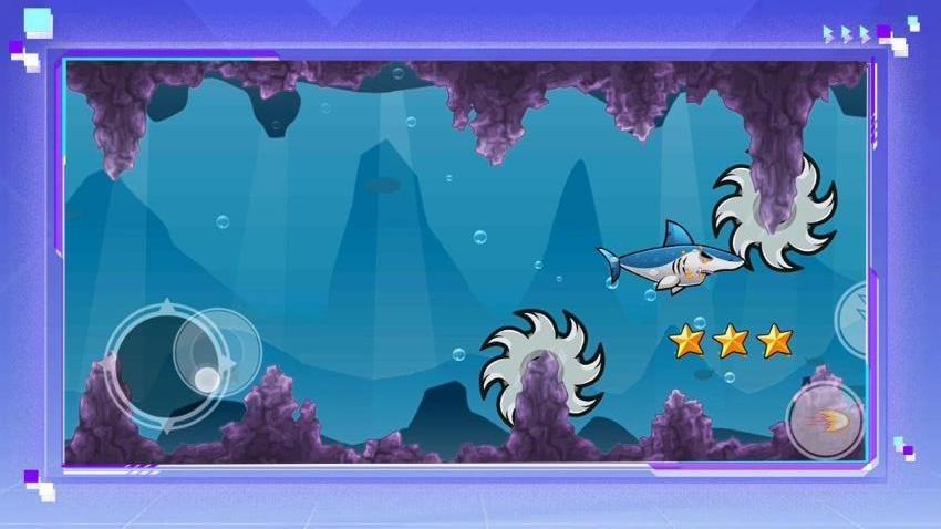 4、开放式海域探索,发现隐藏的深海区域。游戏操作简单直观,通过灵活操控鲨鱼游动方向完成捕食。