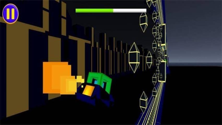 一款极具挑战性的跑酷类节奏动作游戏,融合音乐与高速反应的极致体验。玩家操控几何风格的角色,在充满尖刺、平台与陷阱的关卡中不断前进,通过点击屏幕控制跳跃、飞行或切换重力,每一步都需精准无误。