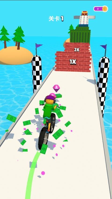 1. 基础操作:玩家通过屏幕上的虚拟按键控制自行车的加速、刹车、转向等动作,完成赛道挑战。