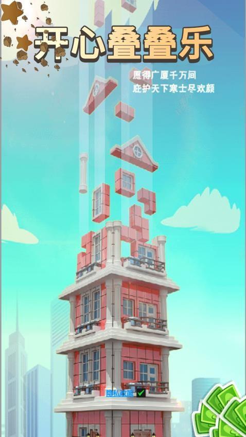 开心叠叠乐是一款以修建楼房为主题设计的休闲游戏。使用堆叠的方式来修建大楼,你需要确保每一个砖块都能平稳地堆放在一起,而且还能得到更完美的造型,这需要你有足够的耐心和技术。游戏提供了不同的难度阶段,包括了新手、熟手、高手、大师等,其中每个阶段还会有特殊的模式,比如限时、限高、无尽、限数等等,玩家可根据相应规则来找到更为有利的解决方式。堆叠的过程中你还需尽快判断砖块的下落位置,下落过程中可直接调整,落在具体的位置上之后不能移动。如果你也对这款游戏感兴趣的话,赶快来试玩一下吧!