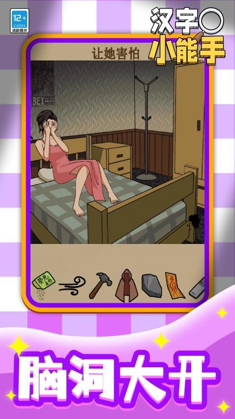 汉字小能手是一款功能丰富的闯关类型游戏,您可以在游戏挑战多种关卡,体验休闲娱乐玩法,游戏提供文字内容,可以在关卡顶部显示相关的任务提示,按照任务描述找到关卡线索就可以开始破解当前的关卡,关卡提供很多道具,您可以认真查看当前关卡的内容,可以查看关卡的场景,可以查看相关的道具,可以查看关卡角色,分析完毕就可以选择适合的道具使用,从而快速通关,游戏玩法都是很简单的,就像是选择题一样,选择正确的道具就可以通关,操作非常简单,如果你喜欢闯关类型的游戏就下载汉字小能手。