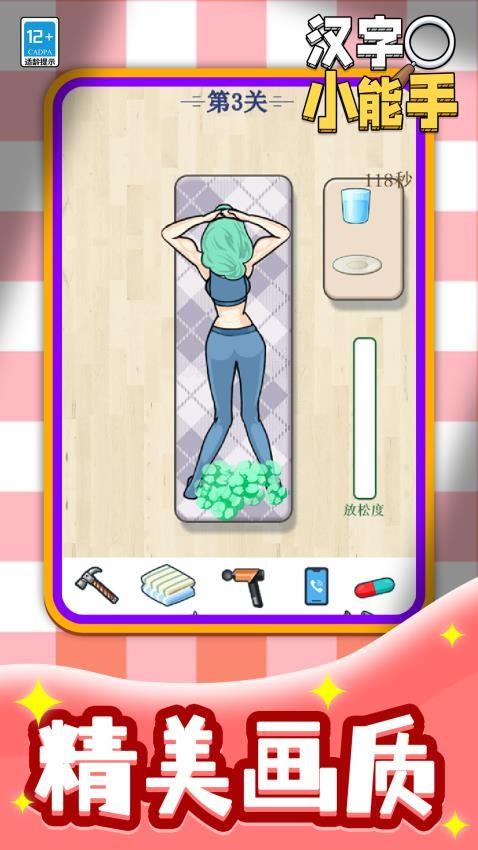 1、汉字小能手提供轻松休闲的游戏玩法,游戏难度很低,每个人都可以闯关