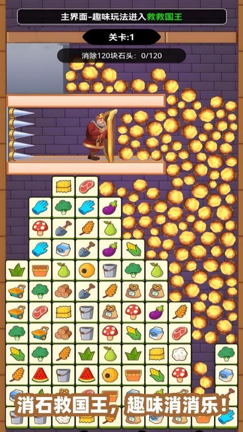 4、消除相关的物品,便可拯救国王,这样的挑战内容十分新颖。