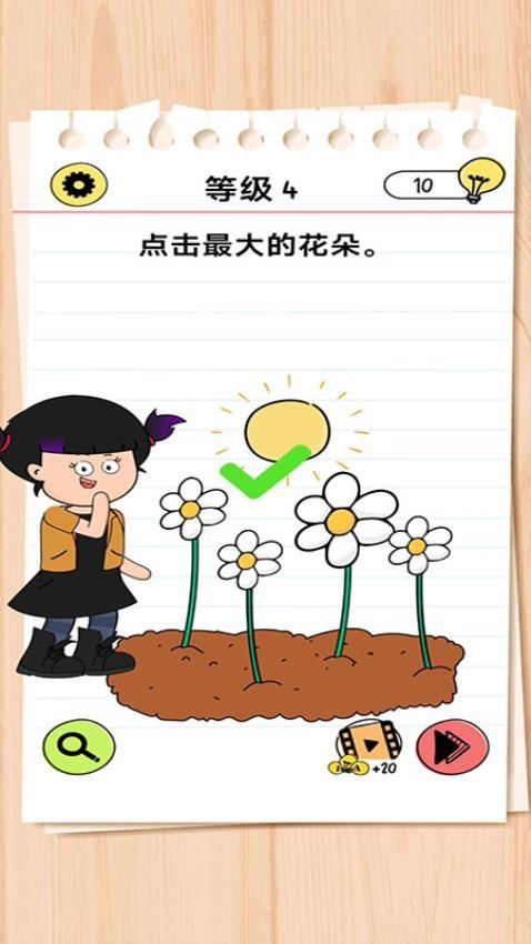 3、当你发现四朵花的时候,需找到最大的那一朵花,即可进入到下一个关卡中,这样的主题十分有趣。