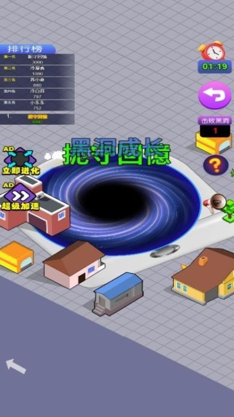 2、小黑洞开始吞噬挑战,周边的所有的物体设施都能选择吞没,这会带来极其独特的视觉效果,趣味性极强。