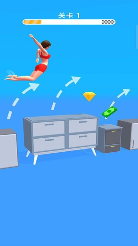 跳一跳一跳是一款非常好玩的休闲跳跃闯关游戏,在这里你需操控角色从目标房屋跳到卧室的床上,这一路上出现了不同的阻碍,比如连续跳跃才不会出现意外,最好不要落地,这样即可得到更好的闯关结果。挑战期间你还可更换一些面积较大的家具,比如沙发、鱼缸等等,便不用担心出现失误情况。在挑战中你还可关注到不同物品之间的距离,才能让你尽快解锁有关的限定解决方式,记住相关的技巧,就可以在适合的时候获得具体要素,你也会成功地落在最后一个障碍物上。如果你也对这款游戏感兴趣的话,不妨来试玩一下吧!
