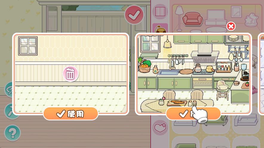 在家中你可解锁不同的家具类型,包括了茶几、桌椅、电视柜等等。