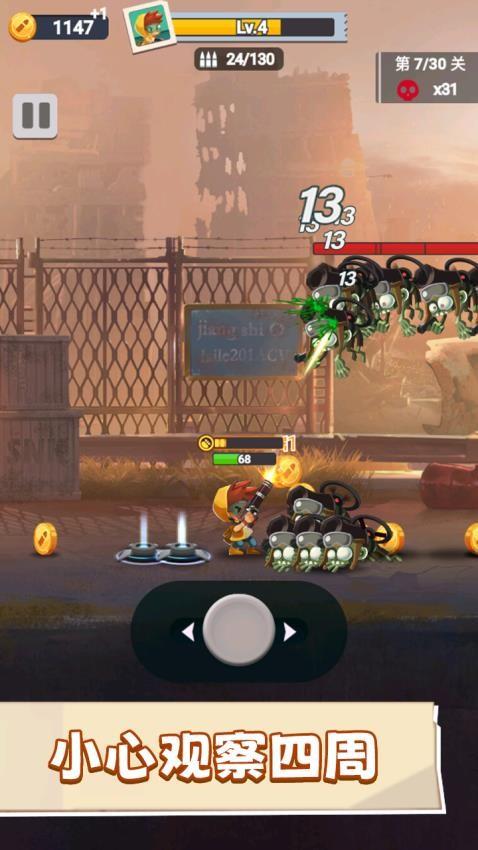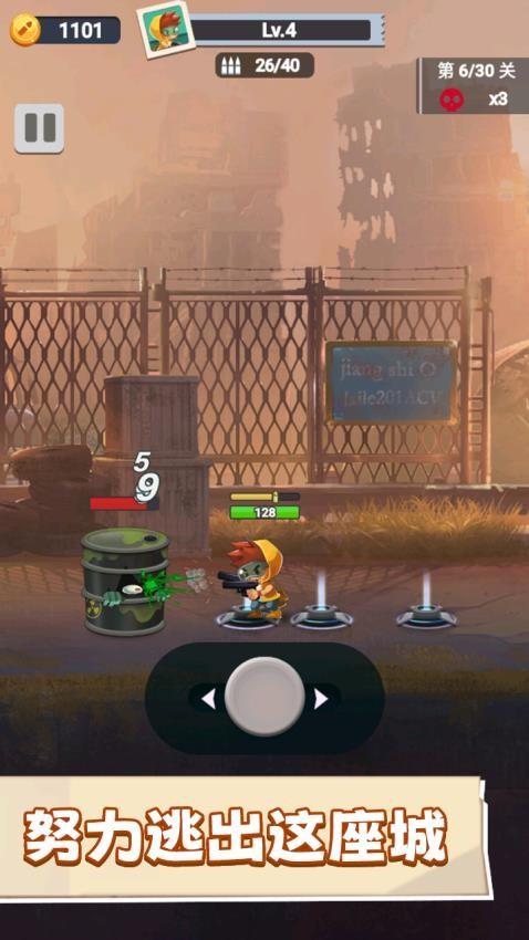 3、求生战斗极其激烈,进入关卡就会面对各式各样的丧尸和障碍阻拦,保持一定距离开枪射击即可完成关卡挑战。