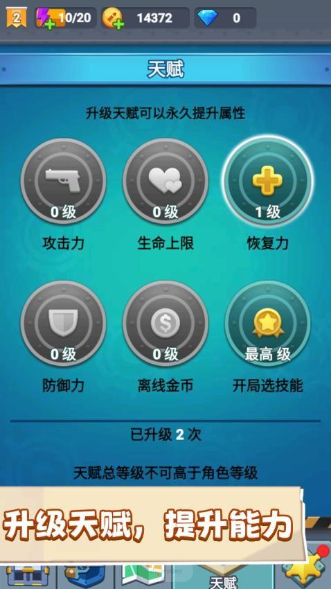 4、多重天赋能力等待提升,如恢复力、离线金币、自选技能等等,所有天赋都会存在明确的介绍与描述。