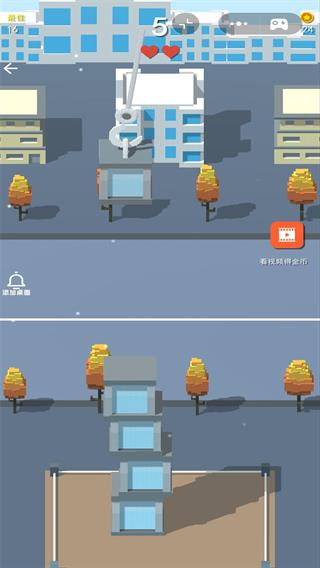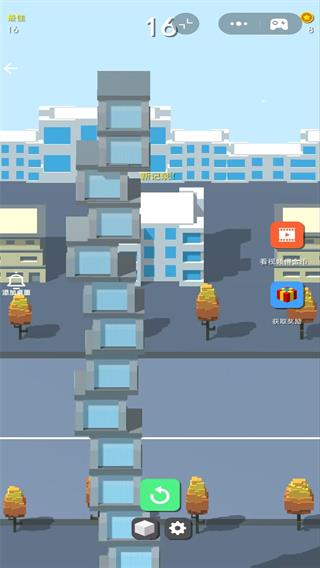 1、玩家可逐渐找到相关的挑战技巧,在放置建筑物的时候需关注它的摇摆方向,及时落在正中心即可。