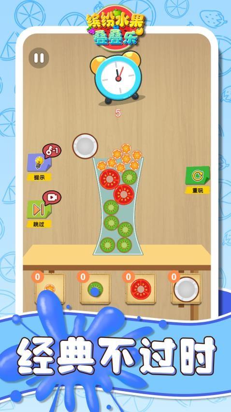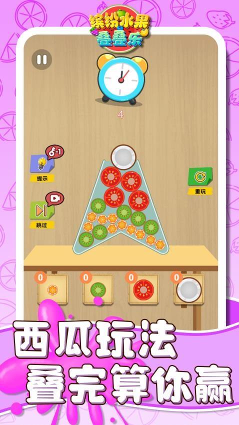 水果叠叠乐是一款画面精美的休闲益智类消除游戏,游戏里需要将相同的水果来进行合成,只要不断的合成就可以快速的合成大西瓜,同时还会有每日任务,需要玩家快速进行完成才能使自己得到丰厚的游戏奖励,也能提高自己的洞察能力。