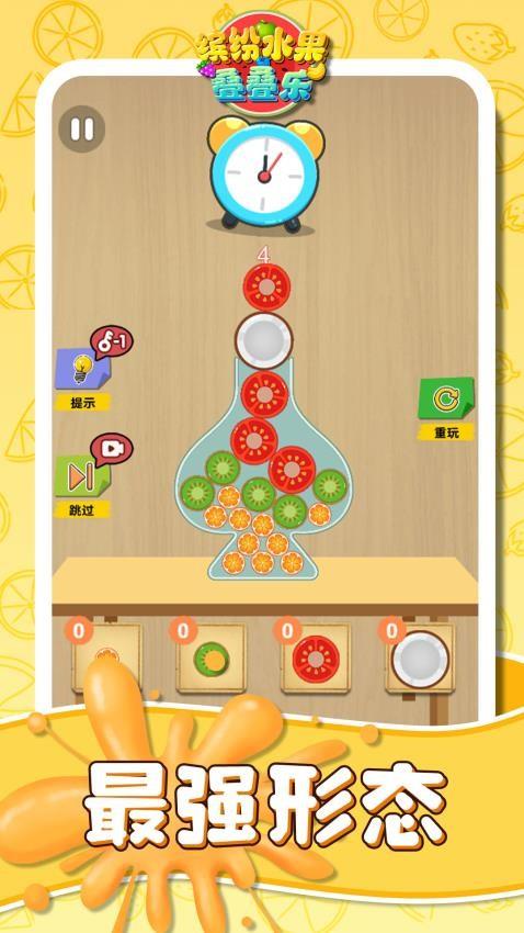 2、每个水果都是不完美的外观形象,玩家需要仔细分层进行合成,完美的层次划分才能充分利用空间资源实现全面消除。
