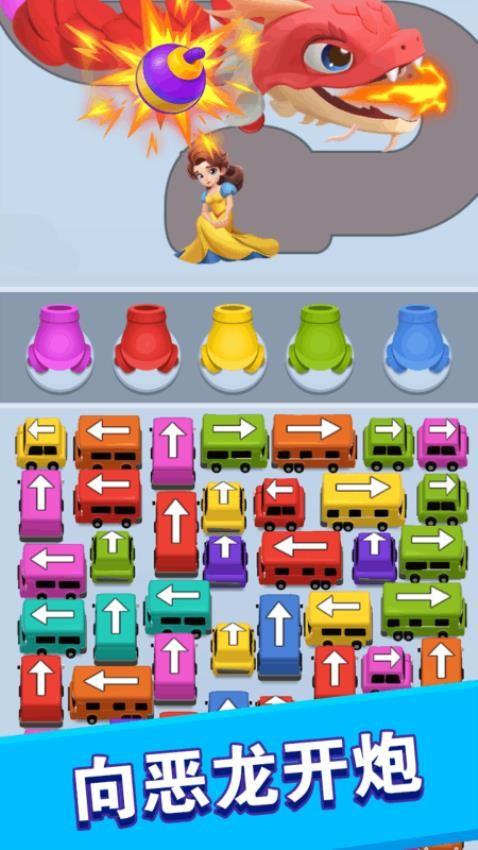 消除无压力是一款非常经典有趣的休闲消除游戏。公主即将被恶龙攻击,你需移动车辆运输炮弹,便可利用炮台来攻击恶龙,直到将公主成功救出来才能通过挑战,这样的玩法难度很适中的,适合许多玩家来体验。闯关的过程中你还需尽量关注特殊的车辆,将其移动到适合的地方中,才能确保其他车辆可轻松离开。箭头所指示的方向就是车辆的行驶方向,必须掌握这样的信息,即可在挑战的时候获得一定优势,而且你还需观察整个界面,以便能够得到绝佳的行动计划和助力。如果你也对这款游戏感兴趣的话,不妨来试玩一下吧!