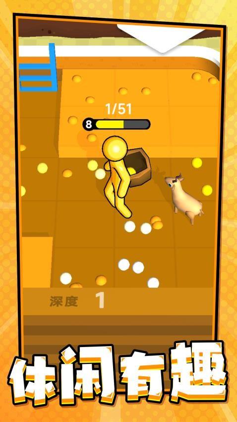 1、很简单的操作玩法,没有其他复杂的操作,玩家可以很轻松的进行各种挖掘,来获得更多的金币去购买更加有用的道具。