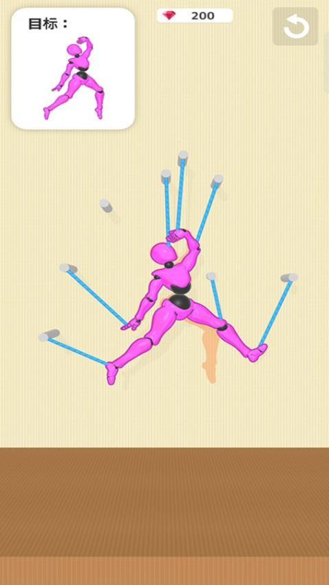 1.精准剪切:玩家需要根据目标姿势仔细观察绳子的分布位置,找准最佳的剪切顺序,使玩偶顺利摆出正确动作。