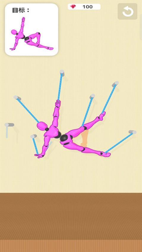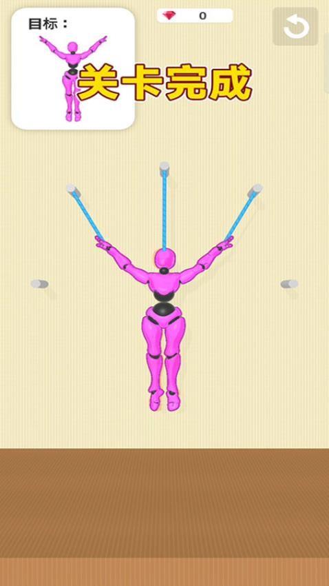 剪个姿势是一款非常简单的休闲益智游戏。游戏中玩家需要通过剪断绳子操控玩偶角色的四肢动作,查看图片提示进行操作才能完成姿势挑战,每个姿势都会特别考验自身经验,必须集中精力切割绳子,任何失误或疏忽的情况都会造成不可逆的情况,这会直接导致闯关失败,重新开始挑战才有机会完成关卡目标,全程都要集中精力进行安排,不能有丝毫松懈。注意剪断时机与顺序变化,根据基本关卡目标调整顺序,完美形成相应的姿势才能获得资源奖励,这会特别考验技巧经验,感兴趣的小伙伴快来下载体验吧。