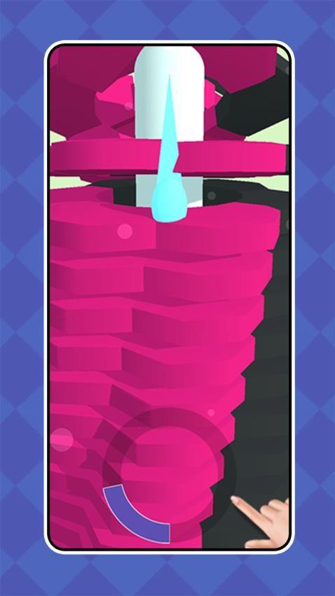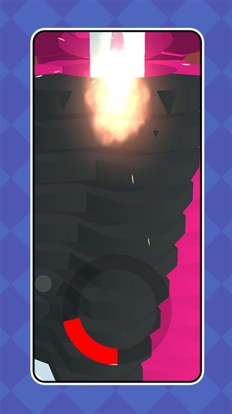 玩家通过单指操控让球体在旋转的螺旋平台上不断下坠。游戏采用创新的物理碰撞机制,球体可以击碎彩色平台加速下落,但遇到黑色平台则会粉碎失败。当连续快速点击时,球体将变身为无敌的火球状态,可击穿所有障碍物。