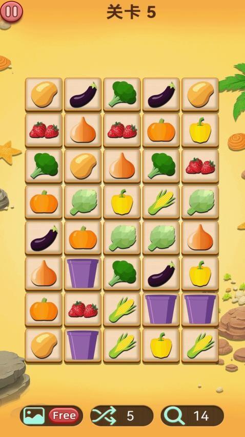 连连看一看是一款十分有趣的休闲益智游戏。在这里你可体验到大量的连连看关卡,需要消除关卡里面的所有元素,这样即可获得通关机会。不同的布局之下你可见到不一样的物品,比如西兰花、坚果、南瓜、水桶、茄子等等,找到相同的元素之后还要关注它们的位置关联,只要符合具体的要求便可将其连接起来,同时你也要及时发现有利的规律现象,为自己提供更好的闯关机会。在限定的机会之下你还可尽量解锁有关的状况,发现具体的限定条件,在闯关期间可收获便利。如果你也对这款游戏感兴趣的话,不妨来试玩一下吧!