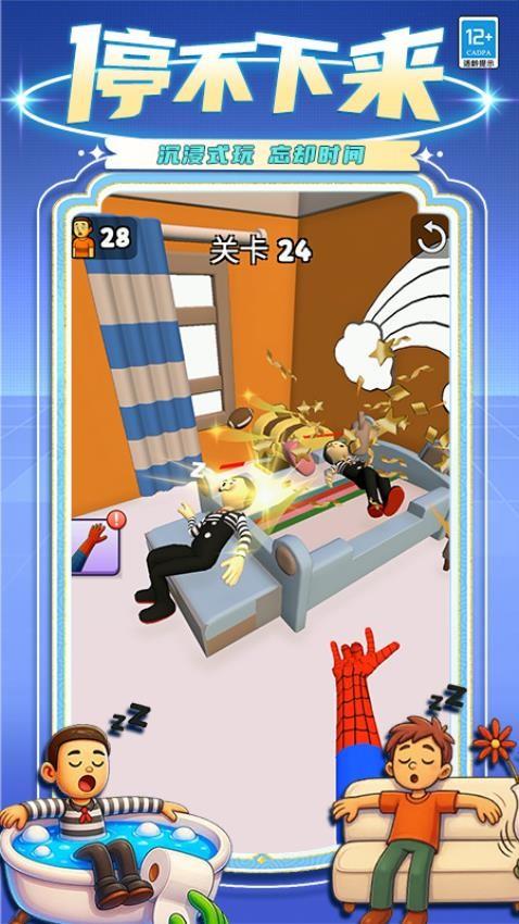 游戏画面生动,角色设计幽默,操作简单易上手,但挑战性十足。玩家可以在轻松愉快的氛围中享受解谜的乐趣,体验“沉浸式玩,忘却时间”的快感。