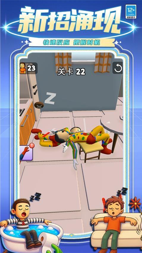 游戏中你可设计多种睡觉方法,便可让角色得到更多有利的闯关效果。