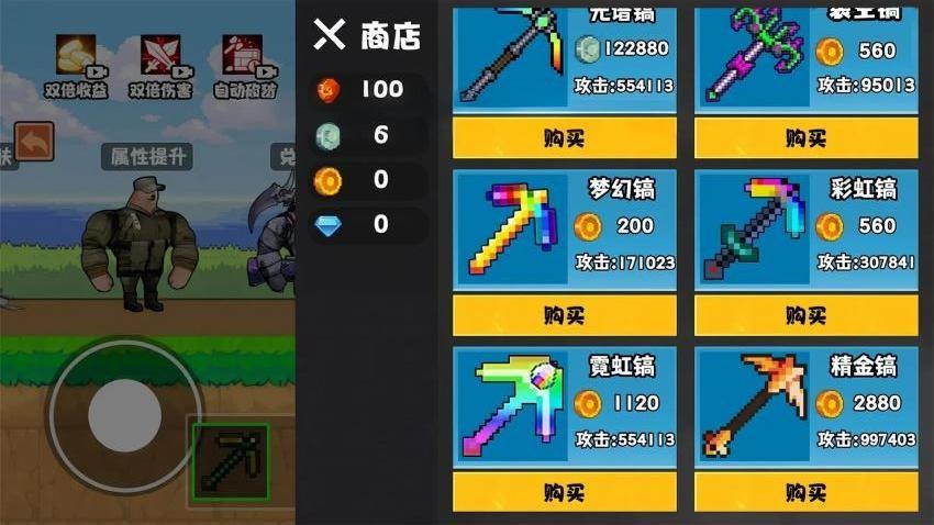 你可在游戏中解锁不同的铁镐种类,包括了梦幻镐、彩虹镐、精金镐等。