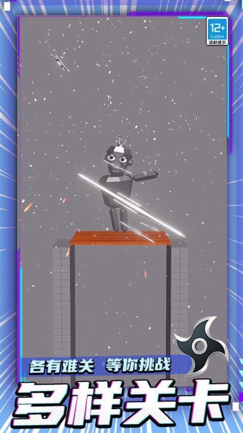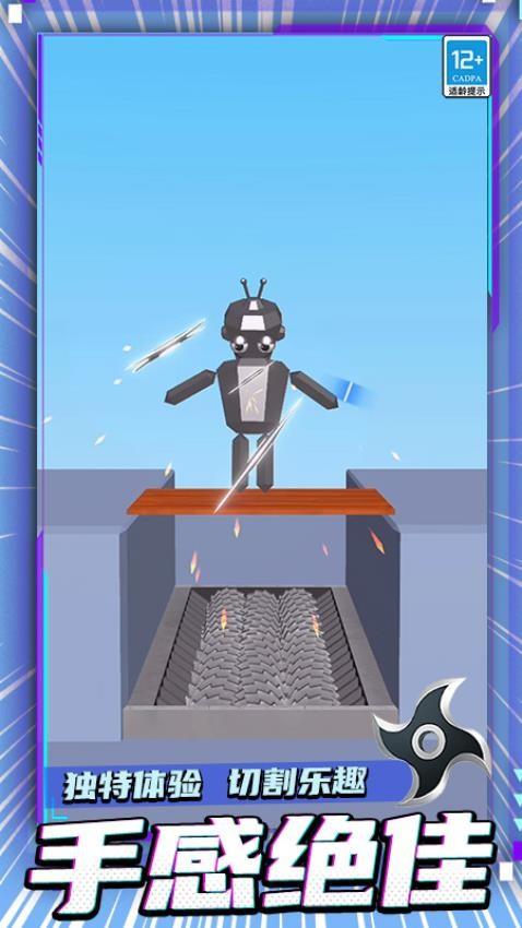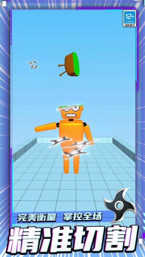 1、精准切割指定位置完成挑战任务,每次投掷都要查看布娃娃方位和任务要求,任何失误都有可能导致失败。