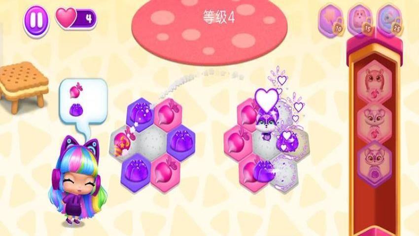 2、每只宠物都有特殊技能,能在闯关过程中提供帮助。完成关卡后还能解锁主题房间,与宠物互动,发现惊喜玩具!