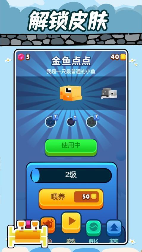 3、玩家还可解锁一些比较重要的食物,这样即可让小鱼得到最好的成长机会,还能吸收其他元素。