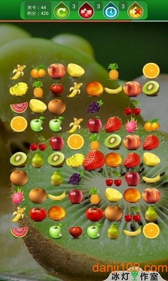 1、游戏玩法:游戏规则是将两个相同的水果用三根以内的直线连在一起消除即可。