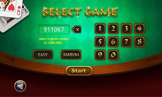 游戏有一百万牌局供您选择,您可以有选择的玩您喜欢的特定牌局,初玩者还可以选择简单的牌局练手。空当接龙的游戏目标是在右上角的四个回收单元中各创建一叠牌,每叠13张花色相同且必须按从小(a)到大(k)的顺序排列。游戏开始,发一副标准纸牌52张到桌面,所有牌正面朝上,且花色点数可见。你可以在右边的四个可用单元里临时放牌,每个单元可放置一张牌。