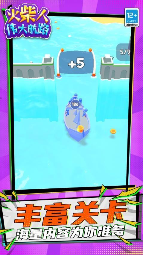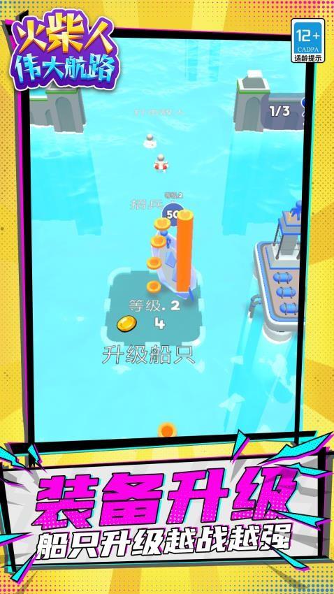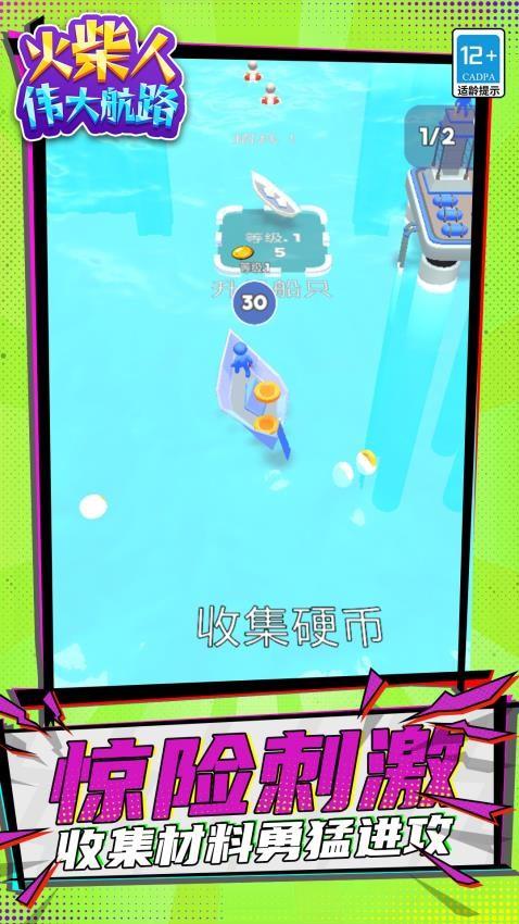 《火柴人:伟大航路》是一款航海对战游戏。游戏中,玩家将驾驶着小船,在这片充满财富的大海上通过不断的收集金币,解救落海的火柴人,来升级船只、壮大队伍,通过不断的提升整体实力,击败对手,称霸这片海域,来开启属于我们的伟大航路。