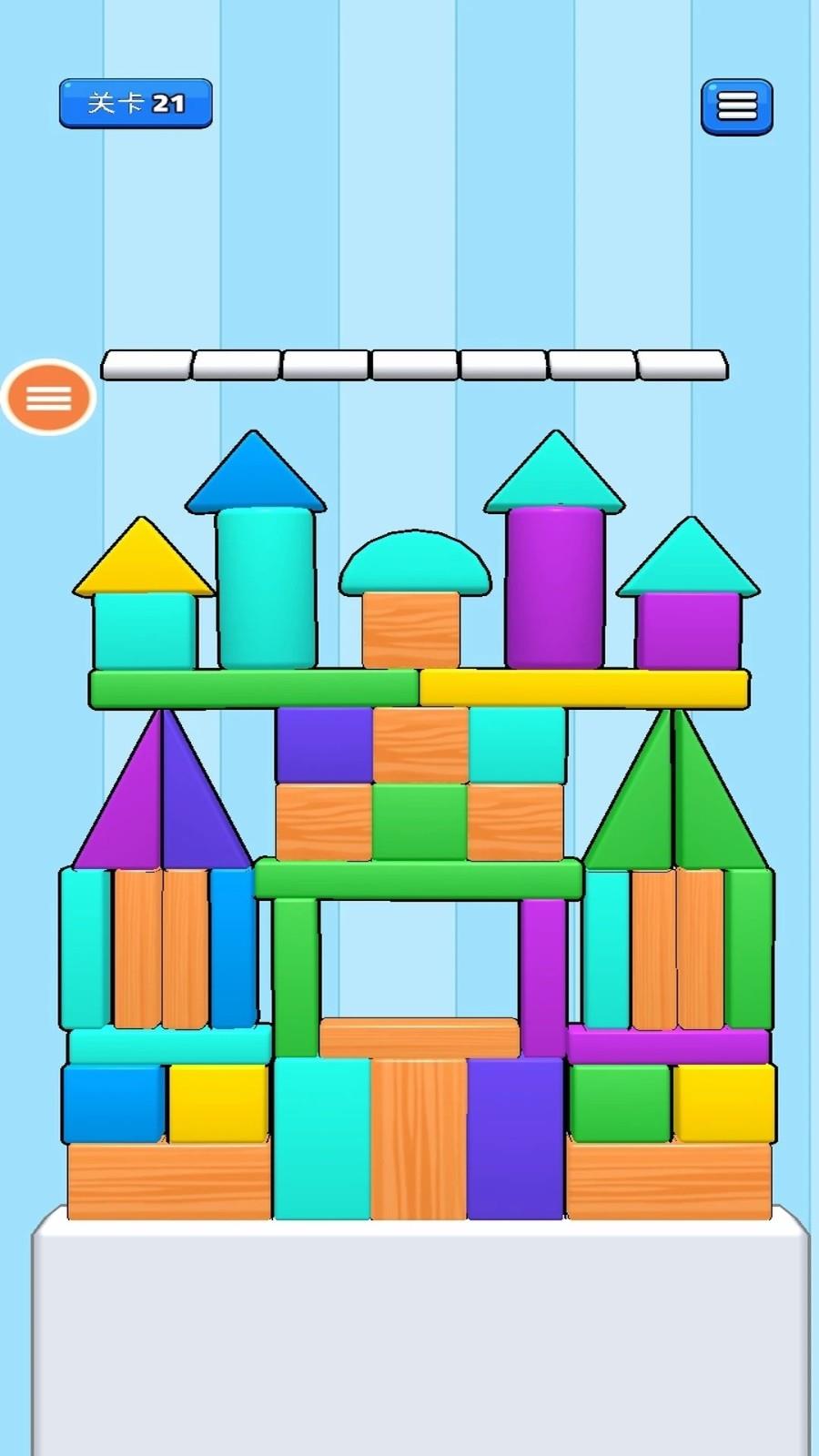 这是一款有趣的消除方块游戏,游戏中有许多由积木搭建的场景物体,你需要点击积木,让它们凑够三个同色的消除。游戏玩法轻松有趣,快来挑战一下吧。