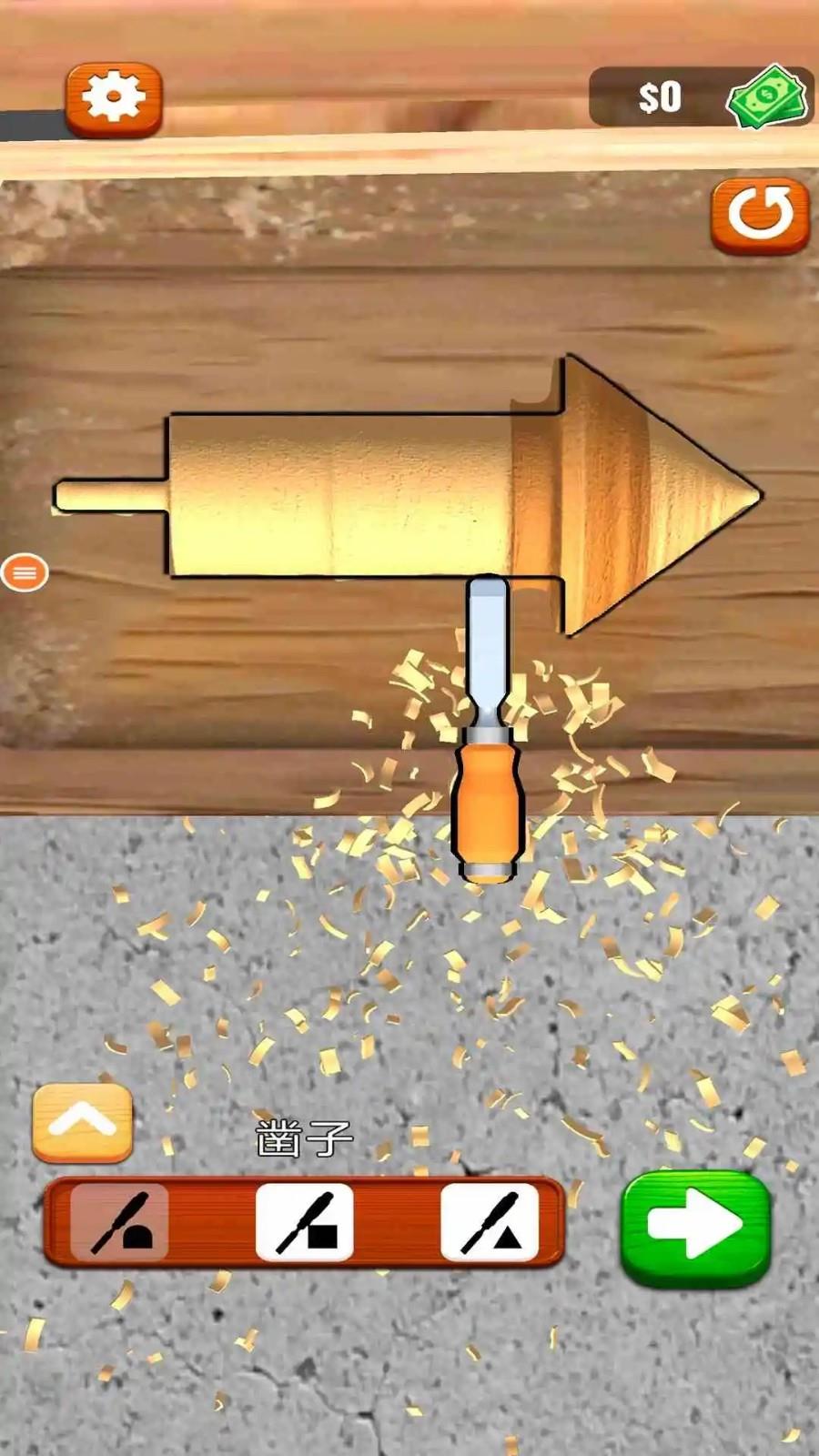 在游戏中你还能及时发现相应的木雕工具,比如凿子、切割机、打磨机等等,将它们利用在相应步骤中。